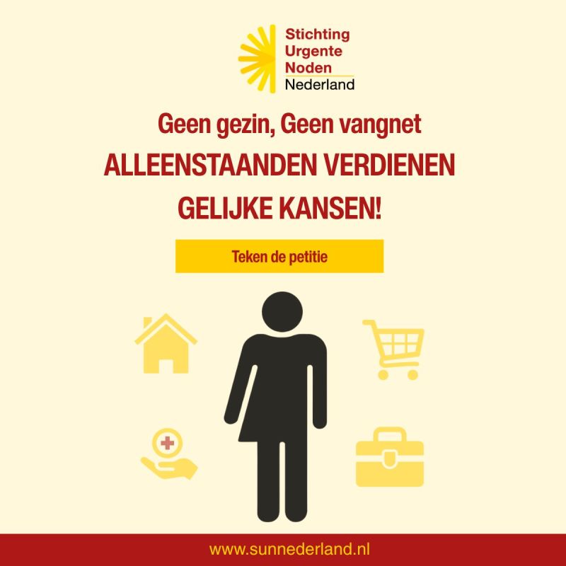 Stichting Urgente Noden Veenendaal roept op: Alleenstaanden verdienen gelijke kansen! Steun alleenstaanden en teken de petitie.